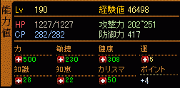 | Lv | 134 | HP | 468 | CP | 287 | 防御 | 257 |